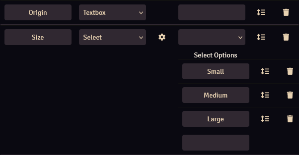 - You can now set the options. For the Origin option, enter "Tutorial", for the Size option, select Large.