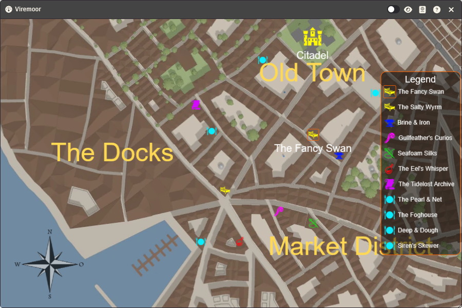 A legend can be displayed over the map. This legend can display one or more map items. Hovering and/or clicking on the legend items will have the same effect as hovering/clicking the map items.
